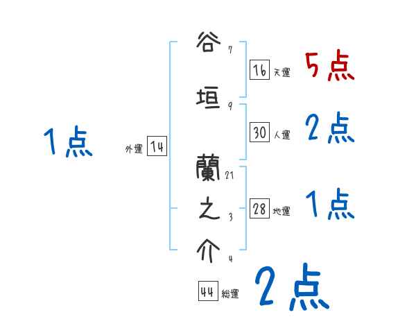 谷垣蘭之介さんの画数の鑑定結果