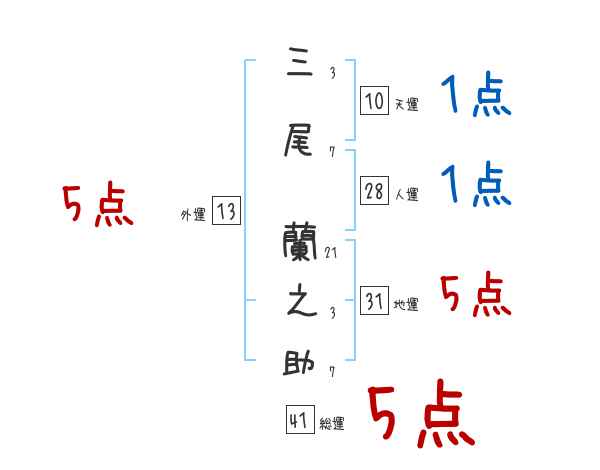 三尾蘭之助さんの外運は13画の5つ星