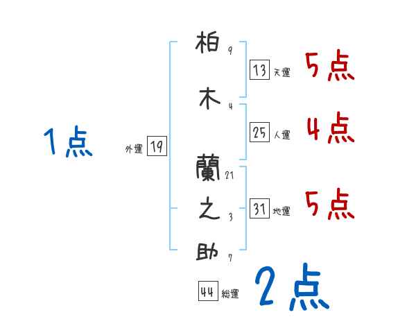 天運![]() | 柏木蘭之助さんの天運は13画の5つ星!才能に恵まれ人気がある。名声を手に入れる。円満な人生。 家系が持つ宿命的な運勢を表します。祖先から受け継いだ苗字ですので自分の力が及びません。家柄を象徴します。 |