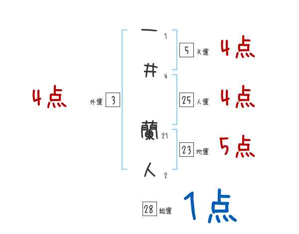 一井蘭人さんの画数の鑑定結果