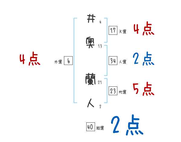 井奥蘭人さんの画数の鑑定結果