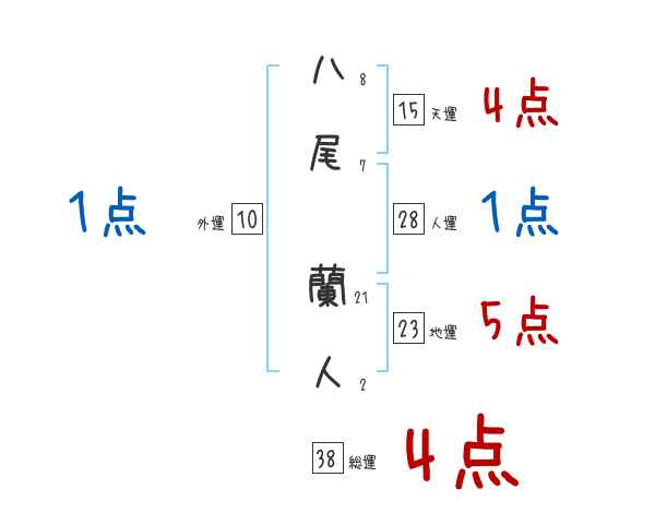 八尾蘭人さんの画数の鑑定結果