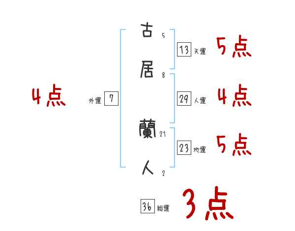 古居蘭人さんの画数の鑑定結果