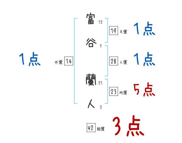 富谷蘭人さんの画数の鑑定結果