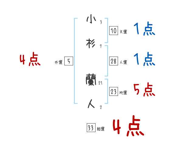 小杉蘭人さんの画数の鑑定結果