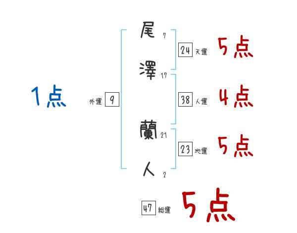 尾澤蘭人さんの画数の鑑定結果