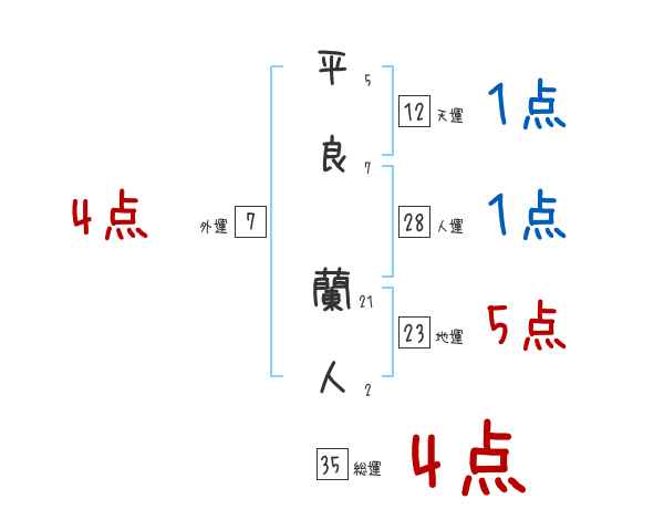外運![]() | 平良蘭人さんの外運は7画の4つ星!強い意志や信念を持ち独立心が強い。自立する。 生活面を象徴する運勢です。外部から受ける影響力を表し、結婚運、家庭運や職場、環境への順応性を表します。 |