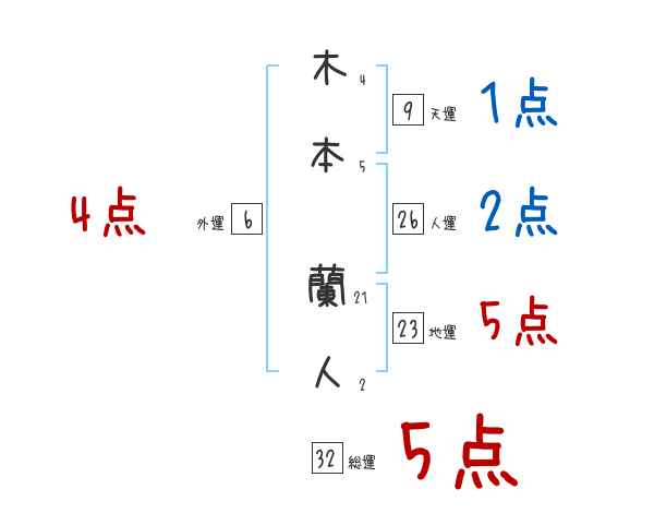 木本蘭人さんの画数の鑑定結果