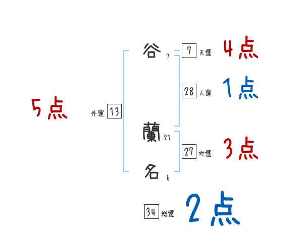 谷蘭名さんの画数の鑑定結果