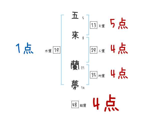 五来蘭夢さんの画数の鑑定結果