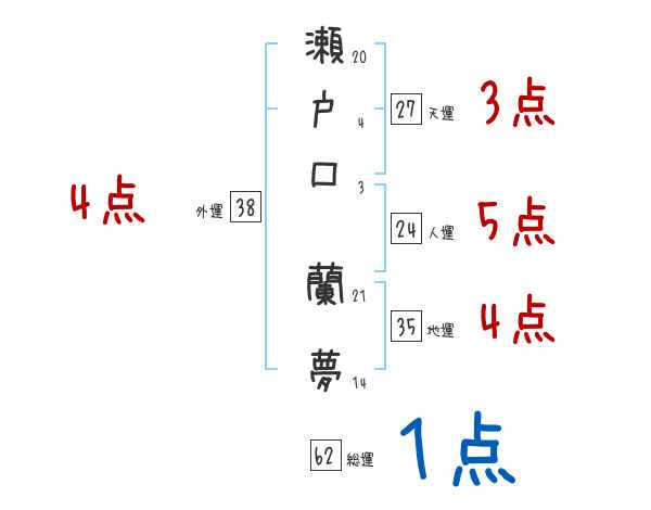 瀬戸口蘭夢さんの画数の鑑定結果
