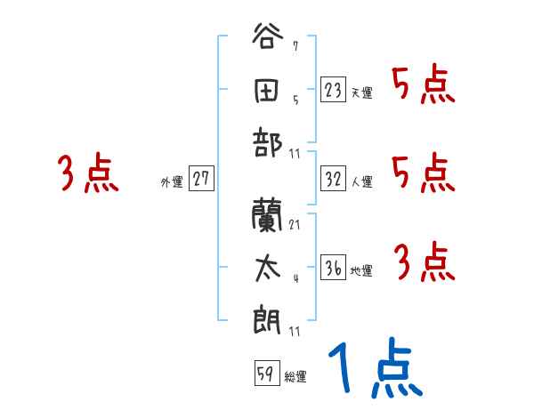谷田部蘭太朗さんの画数の鑑定結果