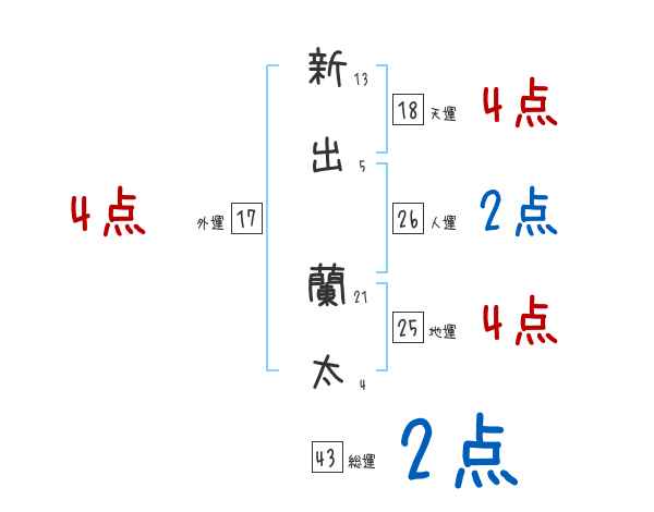 新出蘭太さんの画数の鑑定結果