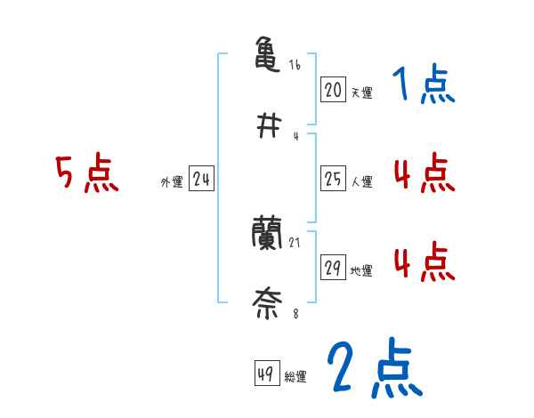 亀井蘭奈さんの画数の鑑定結果