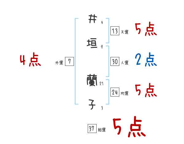 天運![]() | 井垣蘭子さんの天運は13画の5つ星!才能に恵まれ人気がある。名声を手に入れる。円満な人生。 家系が持つ宿命的な運勢を表します。祖先から受け継いだ苗字ですので自分の力が及びません。家柄を象徴します。 |