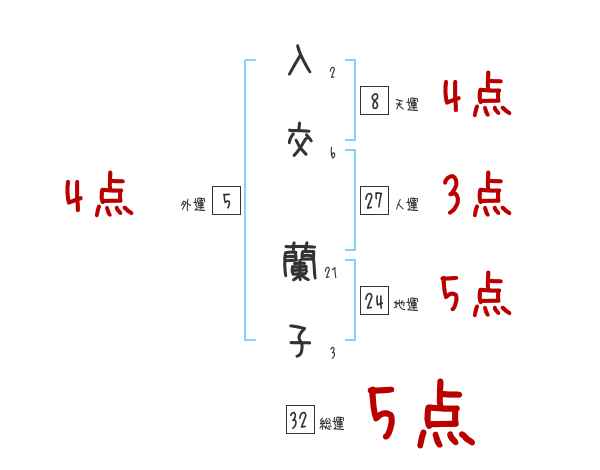 入交蘭子さんの画数の鑑定結果