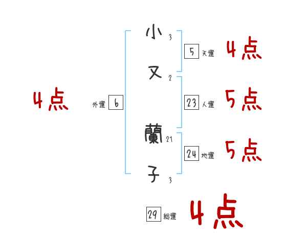 小又蘭子さんの画数の鑑定結果