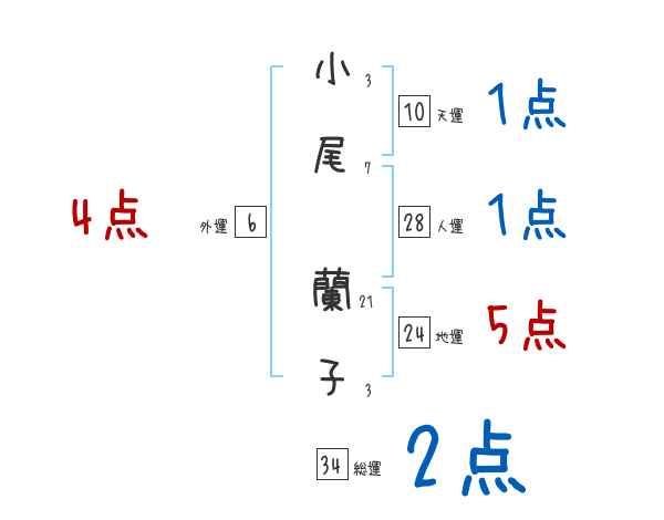 小尾蘭子さんの画数の鑑定結果