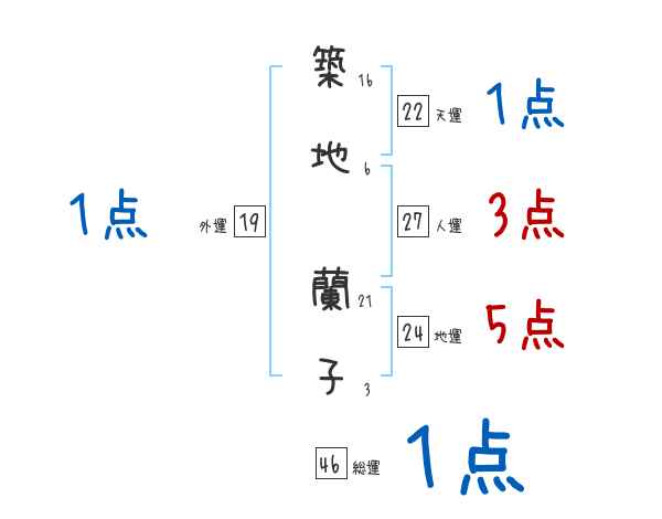 天運![]() | 築地蘭子さんの天運は22画の1つ星!努力することが苦手ないっぽう手先が器用。芸術性にも優れる。 家系が持つ宿命的な運勢を表します。祖先から受け継いだ苗字ですので自分の力が及びません。家柄を象徴します。 |