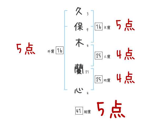 外運![]() | 久保木蘭心さんの外運は16画の5つ星!人望が厚く大きく発展する。逆転成功が見える。 生活面を象徴する運勢です。外部から受ける影響力を表し、結婚運、家庭運や職場、環境への順応性を表します。 |