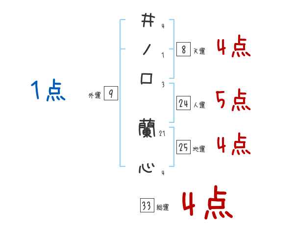 天運![]() | 井ノ口蘭心さんの天運は8画の4つ星!勤勉家。根気強く努力し成功する。忍耐力がある。 家系が持つ宿命的な運勢を表します。祖先から受け継いだ苗字ですので自分の力が及びません。家柄を象徴します。 |