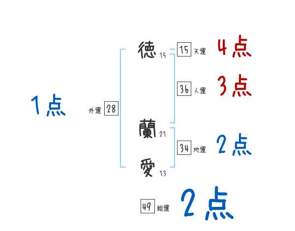 徳蘭愛さんの画数の鑑定結果