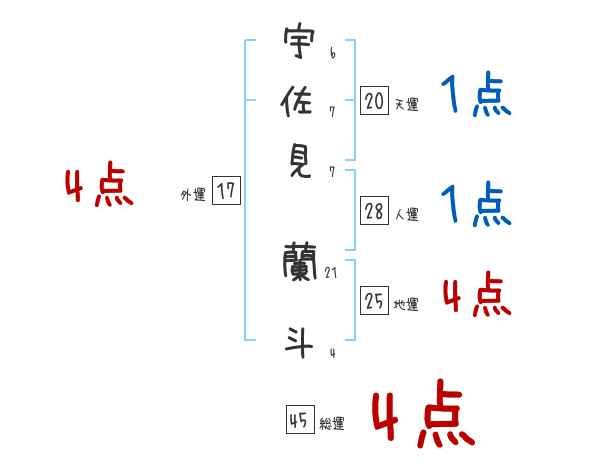 宇佐見蘭斗さんの画数の鑑定結果