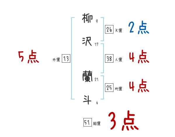 柳沢蘭斗さんの画数の鑑定結果