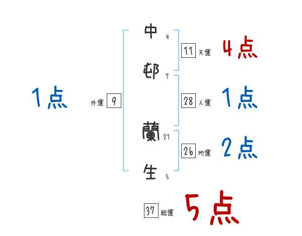 中邨蘭生さんの画数の鑑定結果