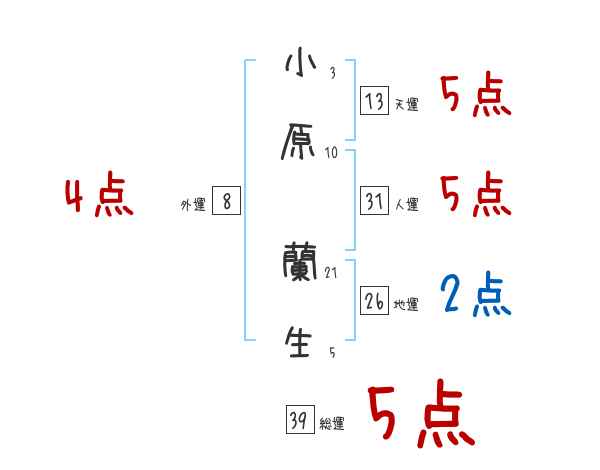 小原蘭生さんの画数の鑑定結果