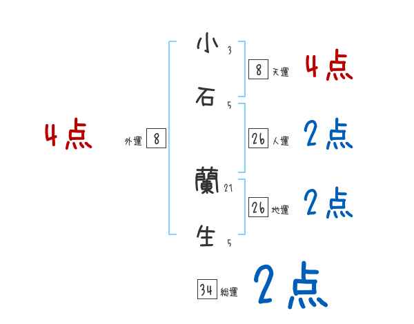 小石蘭生さんの画数の鑑定結果