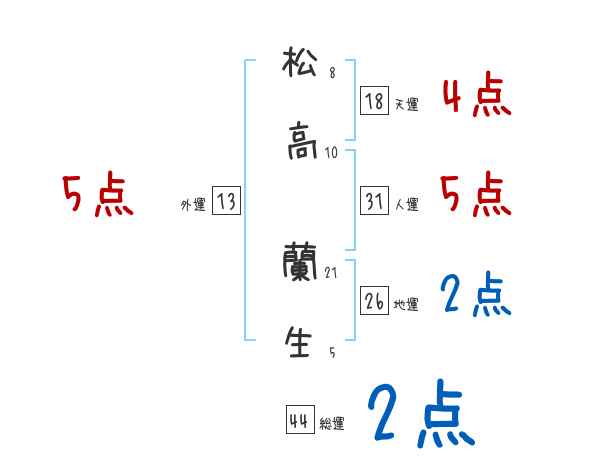 松高蘭生さんの画数の鑑定結果