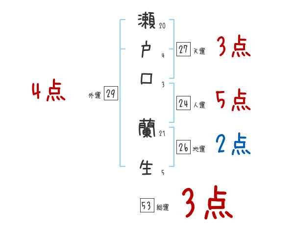 瀬戸口蘭生さんの画数の鑑定結果