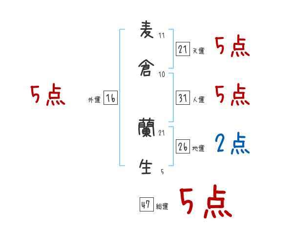 麦倉蘭生さんの画数の鑑定結果