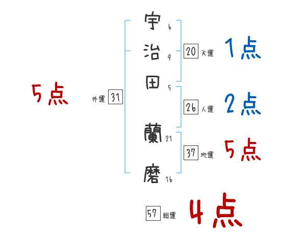 宇治田蘭磨さんの画数の鑑定結果