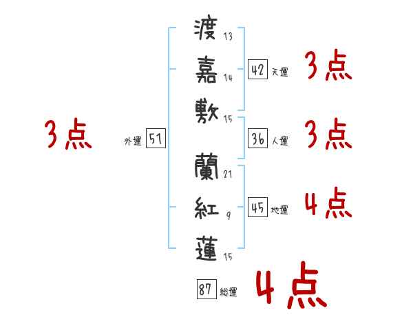 渡嘉敷蘭紅蓮さんの画数の鑑定結果