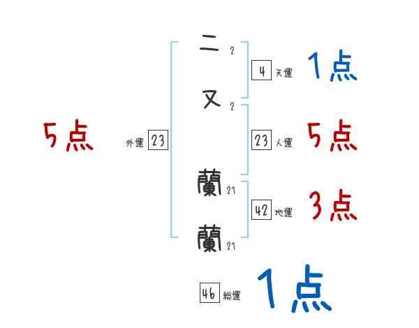 二又蘭蘭さんの画数の鑑定結果