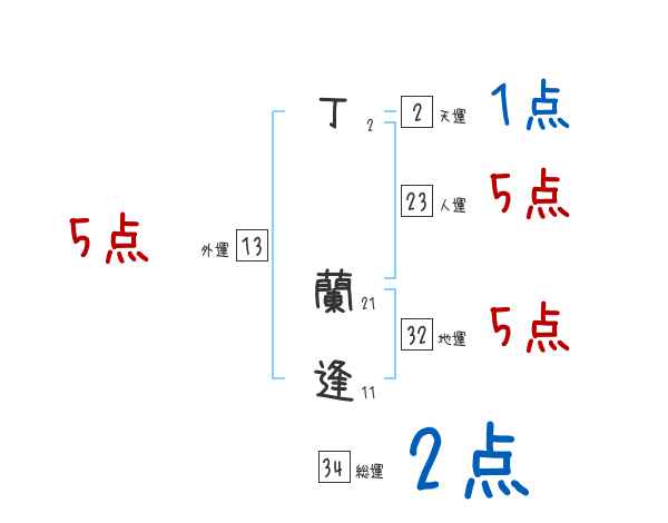 丁蘭逢さんの画数の鑑定結果