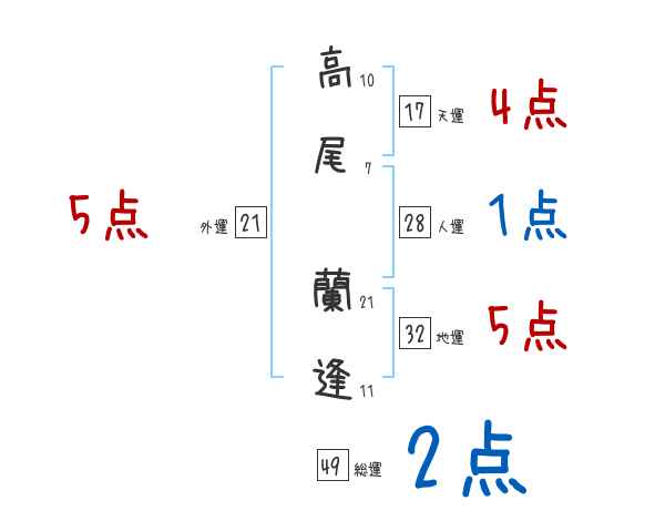 高尾蘭逢さんの画数の鑑定結果