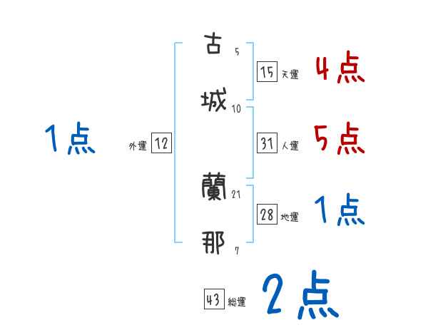 古城蘭那さんの画数の鑑定結果