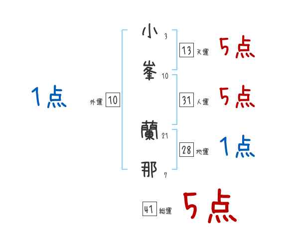 小峯蘭那さんの画数の鑑定結果