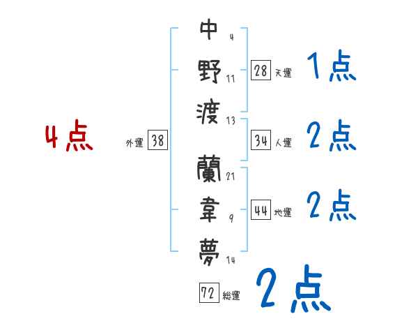 中野渡蘭韋夢さんの画数の鑑定結果