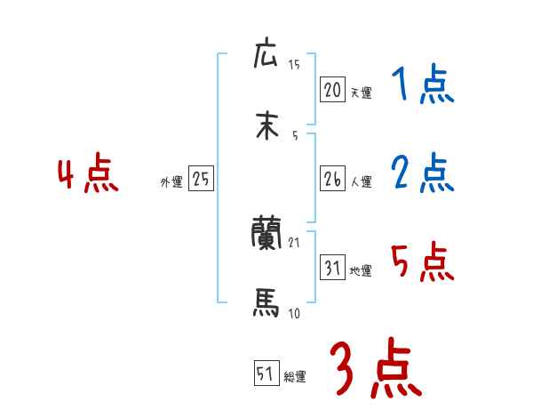 広末蘭馬さんの画数の鑑定結果