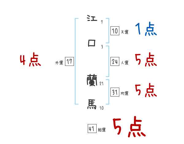 江口蘭馬さんの画数の鑑定結果