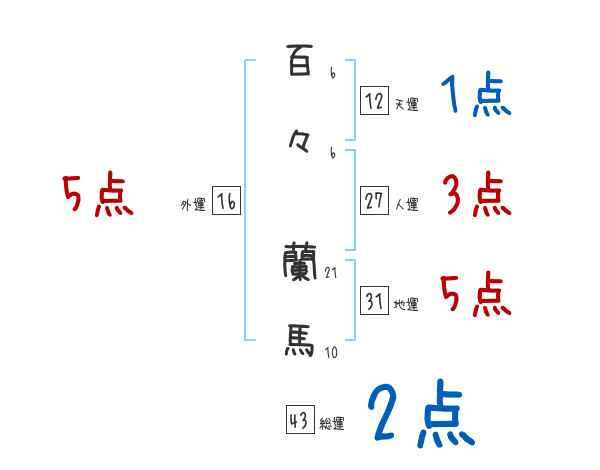 百々蘭馬さんの画数の鑑定結果