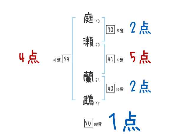 庭瀬蘭鵡さんの外運は29画の4つ星