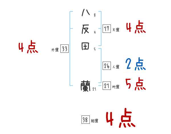 八反田蘭さんの画数の鑑定結果