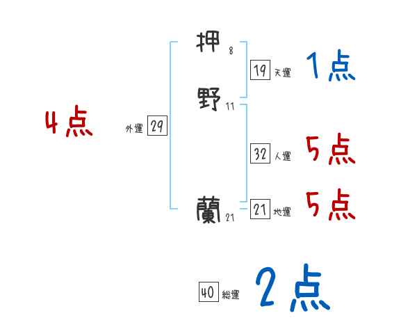 押野蘭さんの画数の鑑定結果