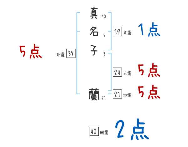 真名子蘭さんの画数の鑑定結果