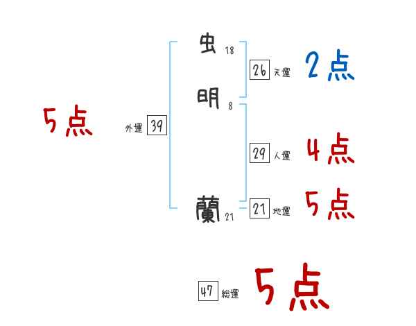 虫明蘭さんの画数の鑑定結果